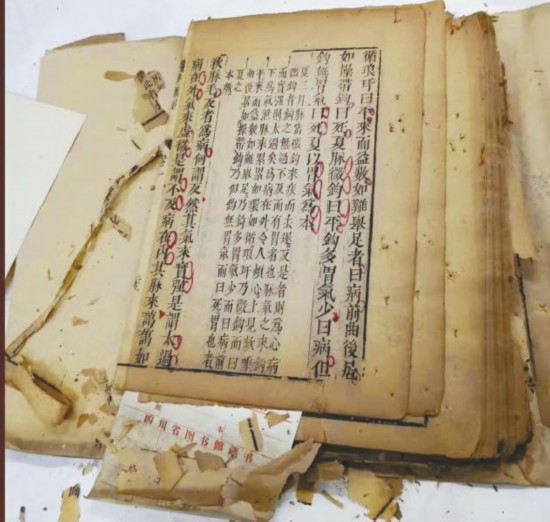 參加杭州培訓(xùn)之前,時(shí)任四川省圖書(shū)館特藏部主任沙銘璞老先生還特別將一塊用棉布包裹的厚厚的書(shū)磚交給袁東玨,并叮囑要把這部書(shū)搶救出來(lái)?!爱?dāng)時(shí),四川省圖書(shū)館的古籍修復(fù)已中斷了很多年,古籍修復(fù)工作面臨青黃不接的局面,沙老希望我回來(lái)后能把這項(xiàng)工作接起來(lái)。”