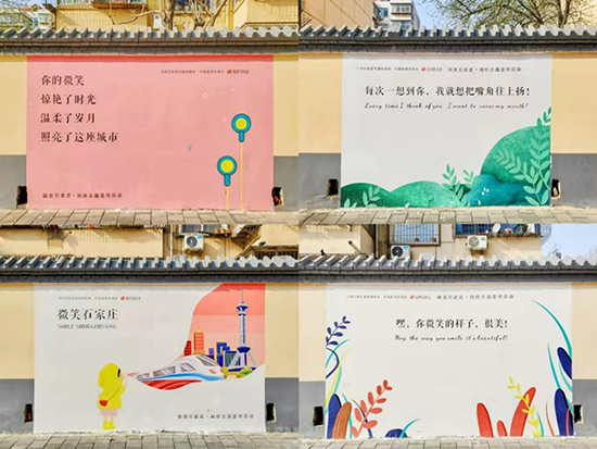 在此地的“微笑墻”主題壁畫,是由中共石家莊市委網信辦、石家莊市文明辦共同主辦的“微笑石家莊”網絡主題宣傳活動的線下打卡地之一,繪畫匯集了各種石家莊的城市元素、溫暖的勵志話語,定格于城市街頭。