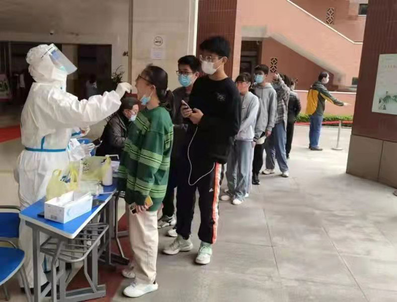 由于學(xué)校實(shí)行準(zhǔn)封閉管理,西藏學(xué)生長期住校。面對嚴(yán)峻的疫情防控形勢,及時安全的核酸檢測成為保障學(xué)生安全的頭等大事。上海市第一人民醫(yī)院得知學(xué)校希望醫(yī)務(wù)人員能進(jìn)校園對住校師生員工進(jìn)行核酸檢測的要求后,克服任務(wù)重、人手緊的困難,每周抽調(diào)醫(yī)護(hù)人員志愿到學(xué)校,解決核酸檢測的實(shí)際困難,為西藏班學(xué)生送去關(guān)心和溫暖。(龍鋼)