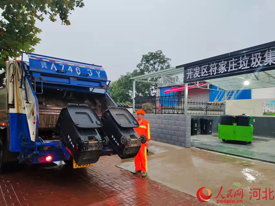 一大清早,在石家莊市鹿泉經(jīng)濟開發(fā)區(qū)符家莊村,保潔員馮琴芳正和同事們一起入戶收集生活垃圾,電動收集車上四個垃圾桶裝滿后,保潔員將垃圾統(tǒng)一運送到村里的垃圾集中分類點。