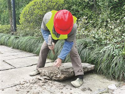 “我們秉持‘最小干預(yù)’的原則——結(jié)構(gòu)層穩(wěn)定的老石板,原則上不修;需要修繕的老石板,則嚴格遵守‘修舊如舊、保留肌理’的原則?!焙贾輬@林設(shè)計院股份有限公司相關(guān)負責人介紹,“一般兩種情況下才進行修復(fù),一是樹池周邊起拱、松動嚴重,二是老石板破損、松動嚴重?!?/p>