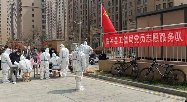 3月31日臨沭縣發(fā)現(xiàn)無癥狀感染者病例后,縣工信局聞令而動,迅速組織人員集結(jié)奔赴幫包網(wǎng)格小區(qū),當(dāng)日協(xié)助開展全員核酸檢測3550余人次,隨后又完成封控區(qū)上門核酸檢測、執(zhí)勤區(qū)域搭建、特殊群體人員排查、夜間值守等工作。 同時招募社區(qū)志愿者協(xié)助封控區(qū)居民每日運(yùn)送生活物資、生活垃圾1000余份。在與疫情戰(zhàn)斗的十多天中,圓滿完成幫包小區(qū)管控區(qū)全員核酸檢測2.45萬人次,封控區(qū)全員核酸檢測3541人次,出入口24小時值守等各項(xiàng)工作任務(wù),筑牢疫情防控“銅墻鐵壁”。