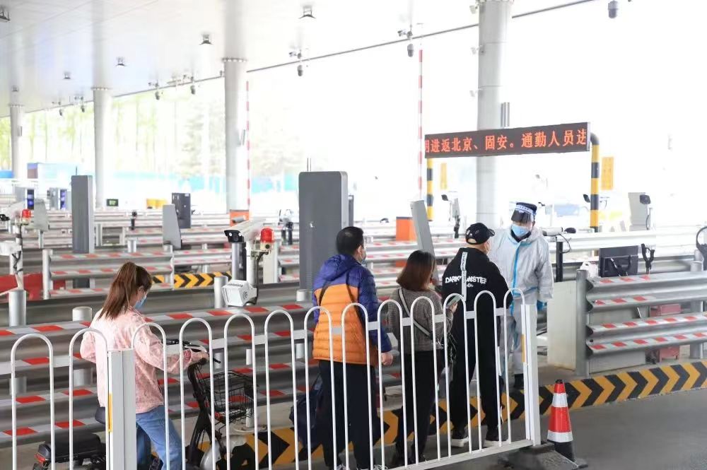 “根據(jù)疫情防控工作,4月11日零時起,固安縣通勤人員恢復(fù)進返北京、固安。目前,堅持非通勤人員非必要不進京,如因重大疾病等極特殊原因確需進京的人員,需出示相應(yīng)證明后進京,并嚴格執(zhí)行北京市疫情防控政策?!惫贪部h辛立村公安檢查站站長徐立說。