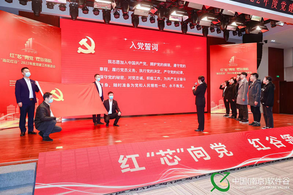 雨花軟件產(chǎn)業(yè)黨委組織黨員重溫入黨誓詞。軟件谷黨政辦公室供圖
