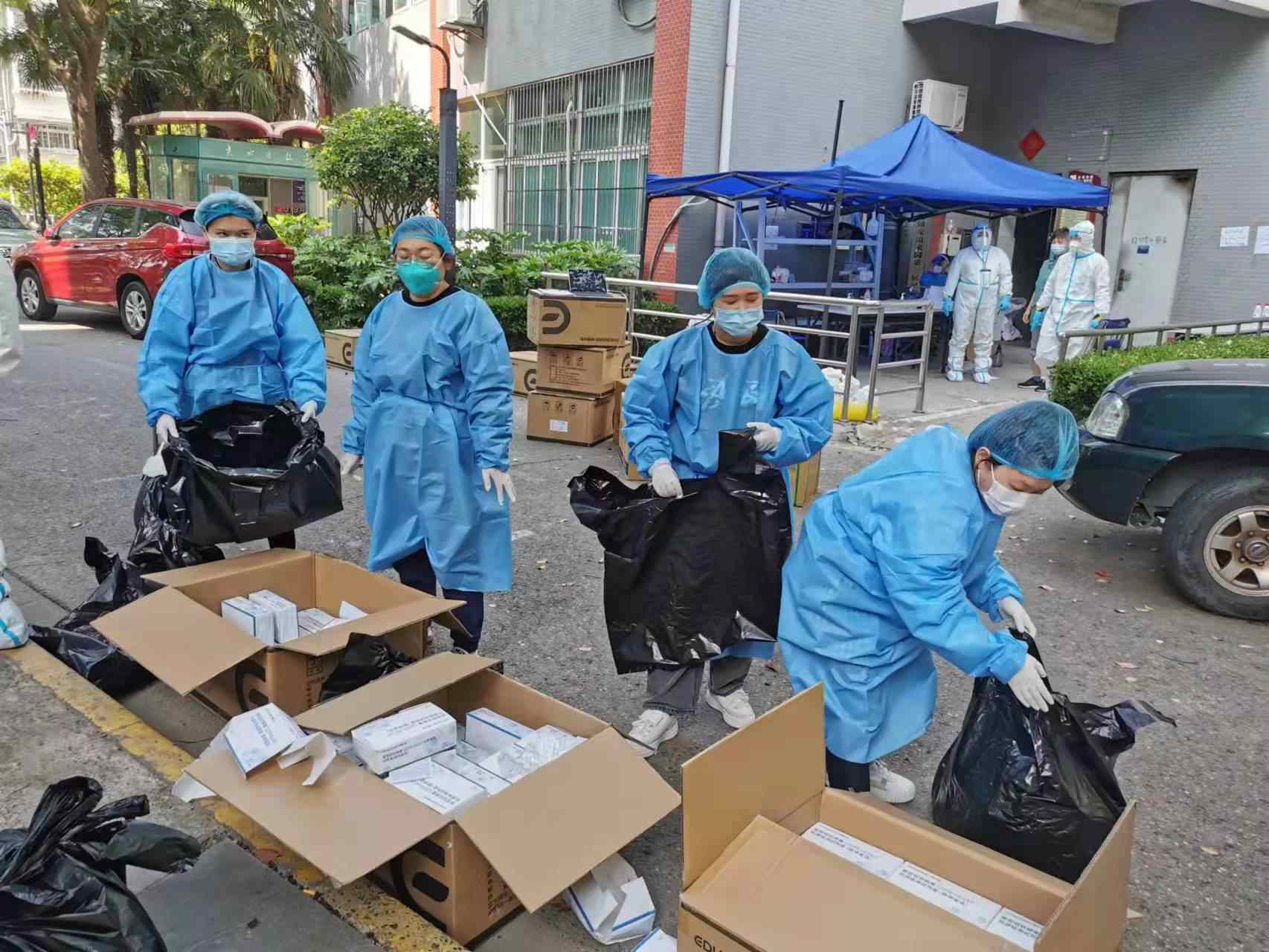 “居委干部全部被隔離,小區(qū)91棟樓、1228戶人家,4000多名居民的核酸檢測(cè)、抗原測(cè)試、物資配送等管理服務(wù)工作必須保持正常運(yùn)轉(zhuǎn),志愿者連續(xù)高負(fù)荷工作,我們?nèi)耸謬?yán)重不足,急需支援?!毕屡蓪毶絽^(qū)楊行鎮(zhèn)友誼家園一居的區(qū)法院干部高億能在工作群中發(fā)出救助信息。寶山區(qū)抗疫工作黨建引領(lǐng)社會(huì)動(dòng)員工作組多管齊下,充分組織動(dòng)員資源力量開(kāi)展支援。