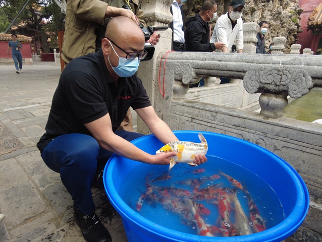 4月25日,在萬物復(fù)蘇、綻放生機(jī)的季節(jié),北京市水產(chǎn)技術(shù)推廣站再次選送興國紅鯉、中國彩鯉、龍鳳彩鯉共計600尾北京本地培育的觀賞魚代表品種投放到故宮博物院內(nèi)的金水河與御花園水池中,充分詮釋城市漁業(yè)的內(nèi)涵,讓現(xiàn)代新型漁業(yè)推廣工作成為首都環(huán)境和諧發(fā)展的亮點工程。
