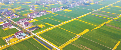 春耕時(shí)節(jié),農(nóng)機(jī)嗡嗡,春水汩汩,白鷺翩飛。由南向北,一行行稻秧逐漸栽滿水田,冬油菜開(kāi)始結(jié)莢長(zhǎng)粒,麥苗陸續(xù)起身拔節(jié)、孕穗。