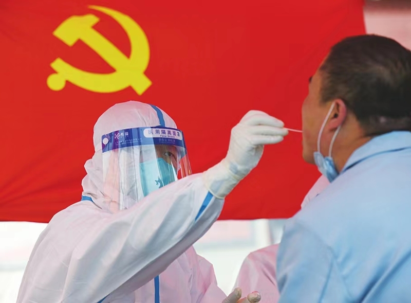 把黨旗插在第一線,以實際行動筑牢疫情防控“紅色防線”。4月26日,太原市迎澤區(qū)開展第三輪全員核酸檢測,在各個檢測點,最忙碌的還是身著防護(hù)服的“大白”,他們耐心又細(xì)致地為居民做著核酸檢測。武六紅 攝