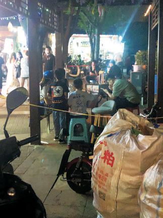 一路向西,類似的現(xiàn)象更是頻頻出現(xiàn),個(gè)別商家仍在做著“路邊攤”的生意。一名商戶告訴記者,因?yàn)辄c(diǎn)餐需要排隊(duì),所以在便道上設(shè)置了等候區(qū),掃碼點(diǎn)餐時(shí)商戶已和顧客講明,只能點(diǎn)選打包帶走。記者眼見(jiàn)那些餐食果真裝進(jìn)打包餐盒,送到了所謂的等候區(qū),可是顧客拿到手并未離開,打開餐盒立刻大快朵頤,顯然等候區(qū)只是給堂食外擺打了個(gè)掩護(hù)。
