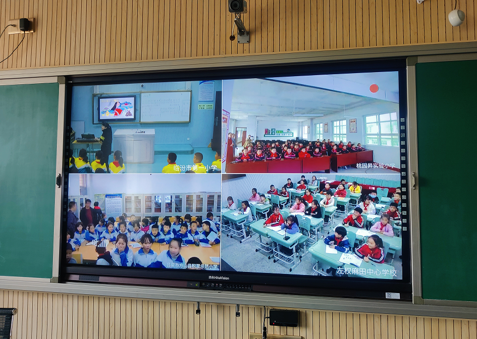 “同學(xué)們,我們今天學(xué)習(xí)《文房四寶》,請(qǐng)看大屏幕......”當(dāng)臨汾市第一小學(xué)三年級(jí)的陳老師話音剛落,同時(shí)在課的左權(quán)麻田中心學(xué)校、呂梁方山縣積翠小學(xué)、忻州市岢嵐縣桃園聲實(shí)驗(yàn)小學(xué)的教室里就響起了一陣陣地驚嘆聲?!靶滦涂臻g”里,四個(gè)相距百公里的200多名在校師生正沉浸在“晉享云課堂”教學(xué)中。