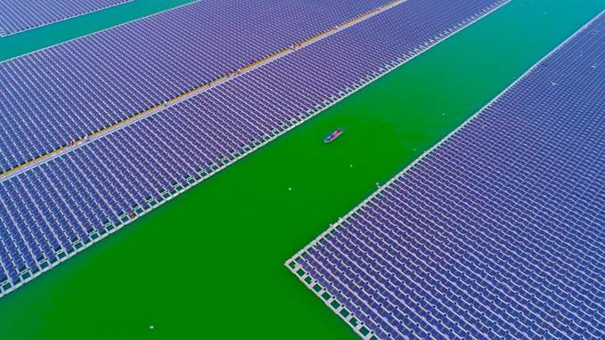 山東陵城公司彩虹共產(chǎn)黨員服務(wù)隊(duì)對(duì)丁莊水庫(kù)光伏電站的光伏發(fā)電設(shè)施、供用電線路進(jìn)行檢查(宋偉龍 攝)