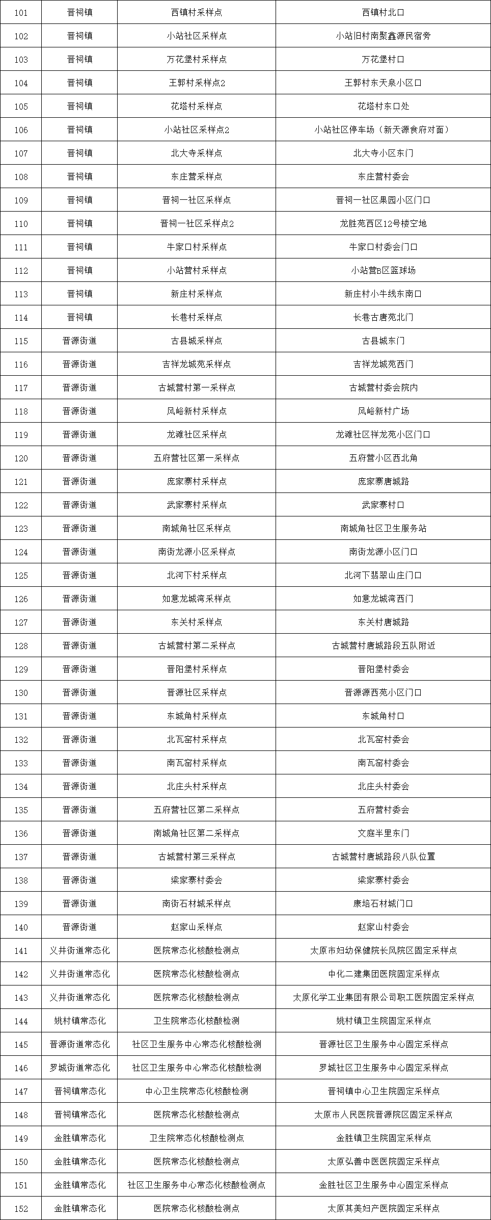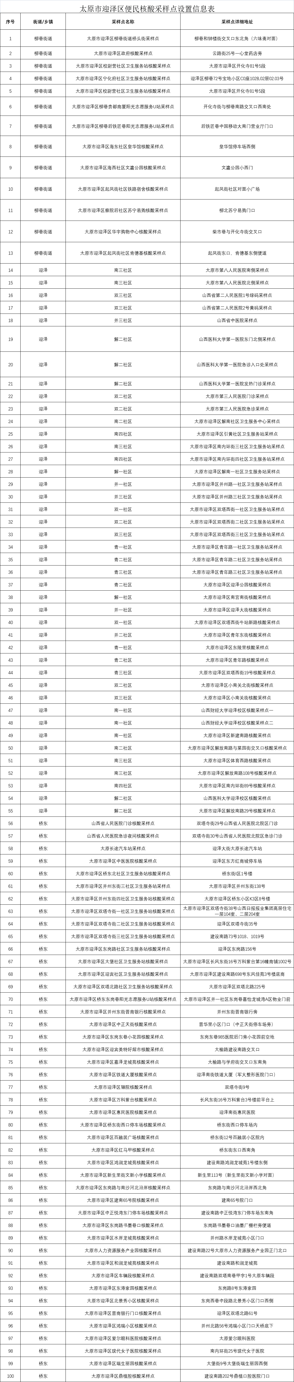 附:太原六城區(qū)便民核酸采樣點(diǎn)位