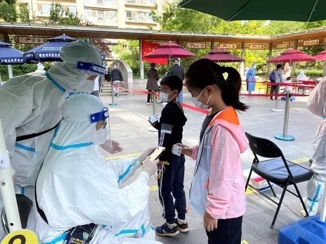 “讓我去封控區(qū),我年輕,身體好!”4月26日,紅廟北里小區(qū)部分區(qū)域?qū)嵤┓猓ü埽┛?,朝陽區(qū)八里莊街道社區(qū)衛(wèi)生服務中心護士劉彩麗主動請纓,就這樣,22歲的劉彩麗和其他4名同事承擔起5個單元門的核酸采樣任務。