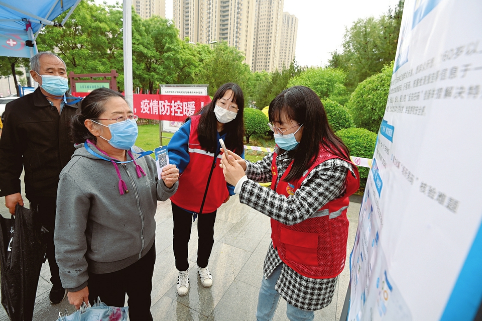 5月12日,太原市和平公園核酸檢測點(diǎn),老年居民體驗(yàn)“反向掃碼”帶來的便捷。據(jù)了解,常態(tài)化疫情防控下,為保障老年人和未成年人便捷出入公共場所,萬柏林區(qū)為60歲以上老年人及未成年人免費(fèi)發(fā)放集健康碼、行程卡、核酸檢測報(bào)告等信息于一體的愛心碼出行卡,用“反向掃碼”新舉措解決特殊群體“亮碼”難題。(記者阮洋攝)