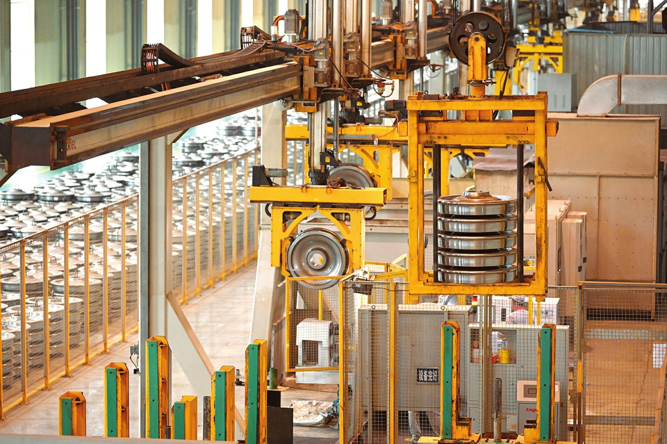 5月10日,太重軌道公司輪對生產(chǎn)車間檢測線上,工作人員正在對即將出廠的高鐵鋼輪進行檢驗。該公司將精益管理和改革創(chuàng)新當做抓好各項工作任務(wù)的關(guān)鍵,深耕國際國內(nèi)市場,積極推進海外項目合作,穩(wěn)固國內(nèi)傳統(tǒng)市場行業(yè),打破傳統(tǒng)營銷方式,積極培育新模式、新業(yè)態(tài),不斷加強核心技術(shù)攻關(guān),拓展新的產(chǎn)品市場。(記者李兆民攝)