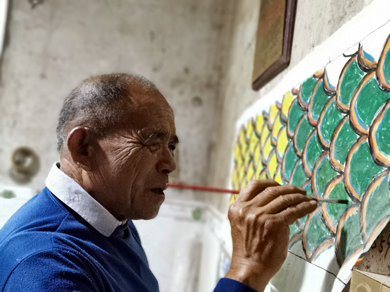 上完課,跟隨羅德書(shū)來(lái)到他的家里。只見(jiàn)畫(huà)好龍麒麟的油紙被當(dāng)成裝飾品掛在墻上,雨壇彩龍的半成品隨處可見(jiàn)。