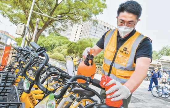 北京:共享單車黨員先鋒隊(duì)上崗 已為2萬輛單車配備"共享消毒液"