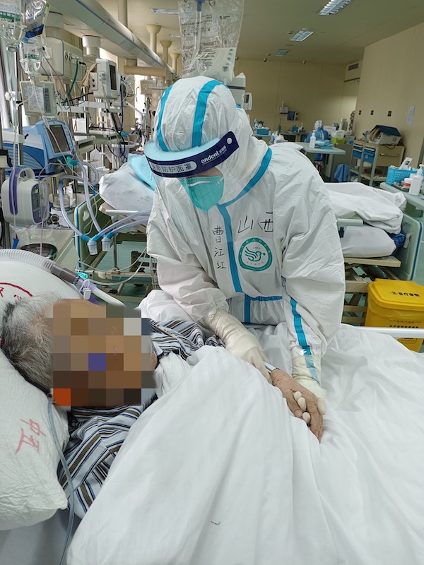 “曹醫(yī)生,我是不是能出重癥了?”張先生期待地看著醫(yī)生曹江紅,他是醫(yī)療二隊(duì)在支援該院ICU后收治的第一例重癥患者。由于糖尿病導(dǎo)致肝膿腫進(jìn)而出現(xiàn)感染性休克危及生命,從普通病房轉(zhuǎn)入ICU。