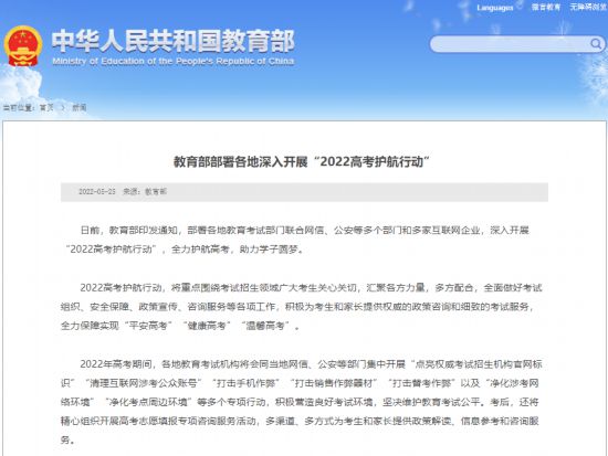教育部部署各地深入開(kāi)展“2022高考護(hù)航行動(dòng)”