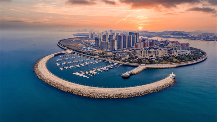 碧波微漾、白帆數點。青島東方影都游艇碼頭項目是克利伯環(huán)球帆船賽青島站承辦場地、國際“五金錨”認證游艇碼頭。碼頭位于星光島南側,共有230個帆船泊位,為國內靠泊船型最大,中高端游艇泊位占比最高的世界級旅游基礎設施項目。其致力于打造中國最高端的度假型游艇會,已成為青島海上新地標。