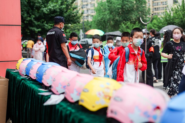 “出門著急了”“忘戴了”“天熱了,戴著麻煩”“不好意思,下次一定戴好頭盔”……5月25日清晨,西安高新交警聯(lián)合高新一小共同行動,開展“一盔一帶”安全守護(hù)行動,在校門口教育、提醒騎行送孩子上學(xué)而未給孩子佩戴頭盔的家長重視交通出行安全?;顒蝇F(xiàn)場,學(xué)校家委會還組織為沒有戴頭盔的孩子贈送了頭盔。當(dāng)天,高新區(qū)30余所學(xué)校安全負(fù)責(zé)人全程觀摩了此次活動。