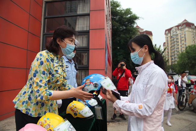 臨近6月,天氣漸熱,騎電動車接送孩子上、放學(xué)的家長增多,但仍有部分家長未重視頭盔對交通參與者的保護(hù)作用,騎行途中未嚴(yán)格執(zhí)行戴頭盔的法律規(guī)定。為進(jìn)一步提高廣大師生、家長的交通安全意識,增強學(xué)生自我保護(hù)能力,共同守護(hù)校園交通安全。為此,家、校、警聯(lián)合行動,組織了這次活動。
