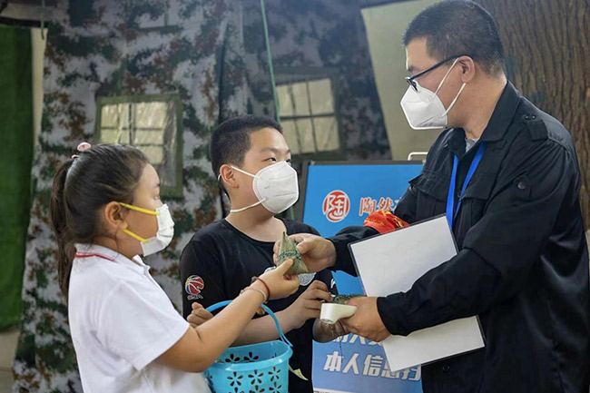“六德少年”的魅力遠(yuǎn)不止這些。在前不久陶然亭街道兒童中心開展的一次云端課堂上,一位百歲“太奶奶”顫抖著手教重孫女包粽子。幾天后,這些粽子便出現(xiàn)在“疫”線工作者的手中。“因為很多粽子線都纏的不牢固,寶貝送的小心翼翼,后來我們才知道這粽子來之不易?!币晃弧耙摺本€工作者接過粽子后,豎起了大拇指。