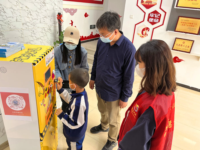 在半島書香社區(qū),居民通過智能電池回收器回收電池就可獲得文明積分。 受訪者供圖