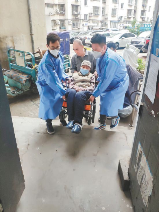 樓道很窄,抬輪椅下來實在不容易。老人坐在輪椅上,家人在后面扶著,張佳楠則和另一位志愿者在前面抬。他雙手托著輪椅,腳慢慢地往下尋著臺階,生怕踩空了。才下了幾級,大家就滿頭大汗了。十多分鐘后,老人終于下樓,得以及時就醫(yī)治療。