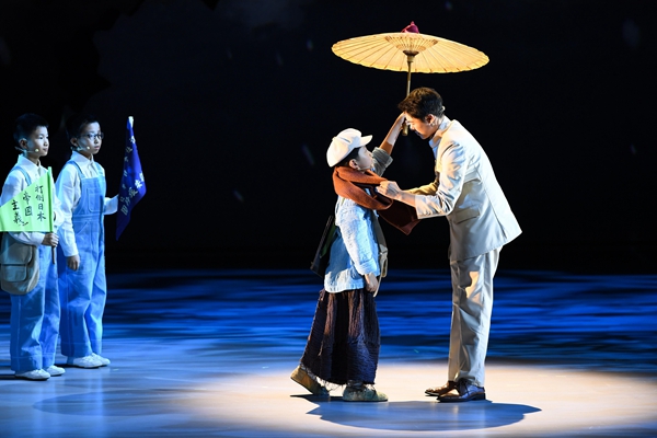2022年5月30日晚,由中國(guó)兒童藝術(shù)劇院與江蘇省淮安市共同打造的兒童劇《新安旅行團(tuán)》在淮安首演。這部劇探尋了當(dāng)年“新安旅行團(tuán)”以文藝方式宣傳抗日、喚醒民眾的紅色歷程。新華社記者 季春鵬 攝