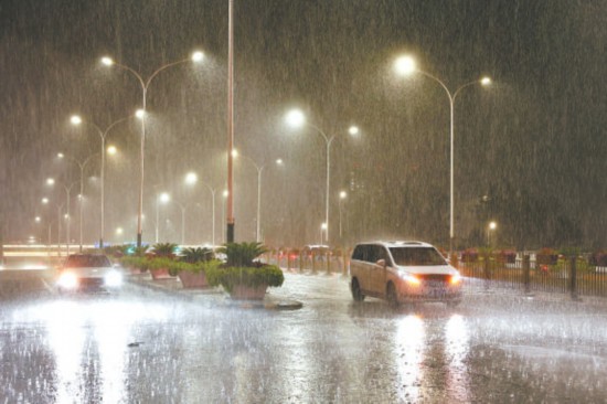 昨晚21:00,通州區(qū)遭遇暴雨天氣。據(jù)通州區(qū)氣象臺預(yù)計,宋莊鎮(zhèn)、潞城鎮(zhèn)、永順地區(qū)6小時降雨量達(dá)100毫米以上。本報記者 白繼開攝
