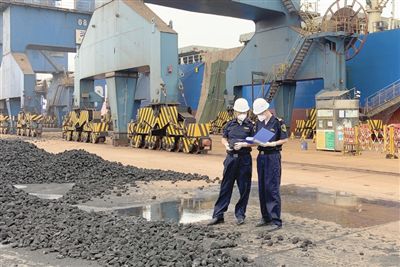 海關關員對焦炭進行現(xiàn)場監(jiān)管。天津海關供圖