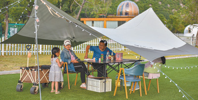 “三五好友結(jié)伴而行,喝茶賞景,好不愜意?!背虝哉f,“現(xiàn)在市場上有很多比較成熟的露營產(chǎn)品可選擇,有的只提供帳篷等設(shè)備,需要自備餐食,有的是全包,吃住游所需都準備好了,還有些個性化的產(chǎn)品會提供桌游、羽毛球等休閑項目?!痹隗w驗過幾次露營后,程曉正打算帶上父母一起戶外郊游。