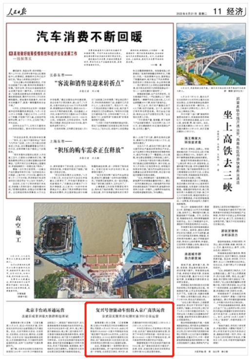 人民日報點贊青島中車四方:智能復(fù)興號在京武段開跑時速350公里