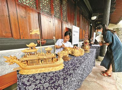 寧波主會場“運(yùn)河市集”展示龍舟雕刻技藝。唐嚴(yán)攝
