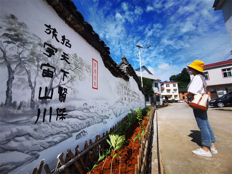 招旅村作為連接桂陽縣和郴州市區(qū)的交通要道,從古至今就有著豐富的古驛站文化,“招天下賢杰,旅宇宙山川”便是招旅村名的由來。在美麗屋場的打造上,村民們和鎮(zhèn)村干部致力于突顯出本村的特色文化,采取在青磚墻和房屋外墻繪就古詩詞和山水畫,在村內(nèi)步行道上用青磚老石作點綴,顯現(xiàn)出招旅下灣古色古香的驛站文化。