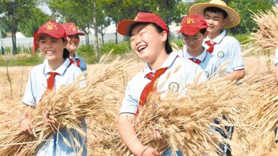 安徽省淮北市濉溪縣蒙村小學(xué)組織學(xué)生走進麥?zhǔn)宅F(xiàn)場,讓學(xué)生在田間課堂真切地感受勞動的辛苦和糧食的寶貴。