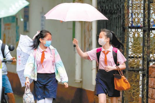 中小學(xué)生雨中返校 防疫安全成第一課