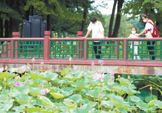荷花節(jié)期間,圓明園將舉辦劇景游、文創(chuàng)設(shè)計(jì)大賽、攝影大賽、寫生大賽等豐富多彩的文化活動。 本報記者 王海欣攝
