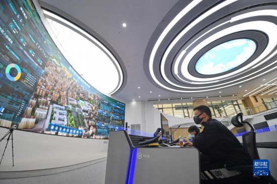 工作人員在雄安新區(qū)容東城市運(yùn)營(yíng)管理中心監(jiān)管平臺(tái)工作(2022年3月29日攝)。新華社記者 朱旭東 攝
