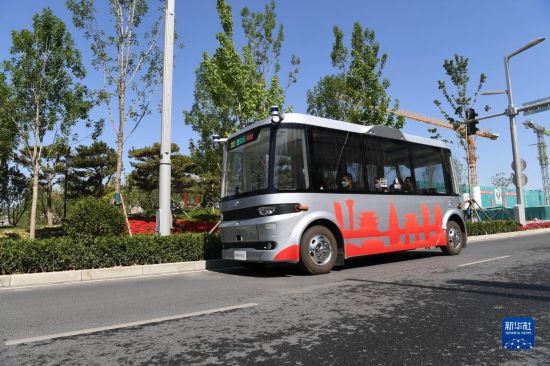 一輛無人駕駛車在雄安新區(qū)道路進(jìn)行路測(cè)(2022年5月27日攝)。新華社記者 朱旭東 攝