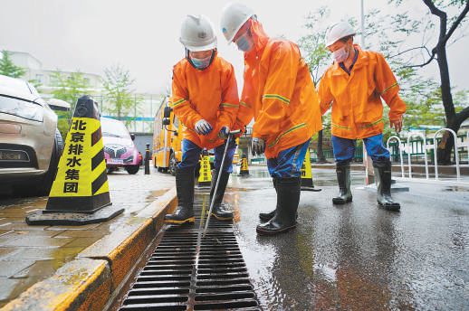 昨天9時許,在朝陽區(qū)管莊路上的一處排水口旁,兩名北京排水集團的防汛人員先用錐桶做好警戒防護,接著用鉤子鉤起雨水箅子,加速排水。在朝陽區(qū)金泰橋下凹橋區(qū),北京排水集團壩河流域分公司的工作人員早六時就到達現(xiàn)場進行值守?!斑@個點位地勢較低,短時雨量大的情況下容易造成積水,為避免影響交通,我們提前做好了準備。”現(xiàn)場一位工作人員說。