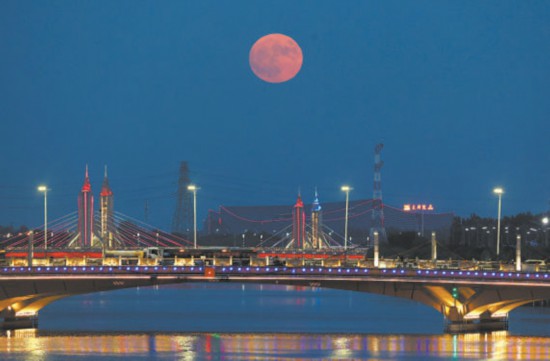 昨晚,一輪滿月出現在城市副中心北運河上空,與城市副中心大劇院、玉帶河大橋交相輝映。這也是今年最接近地球的一次滿月。