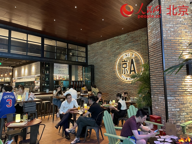 除了火鍋店,一家名為“京A Taproom”的美式精釀啤酒餐吧也熱鬧十足。美式工業(yè)風的裝潢極具格調(diào),炸雞配啤酒的組合也頗有人氣。“這里的氛圍我很喜歡,小吃和啤酒也很對我的胃口,來這里能夠忘掉那些煩惱和壓力。”李女士在工作了一天之后,邀約了朋友一起來這家餐吧放松心情。