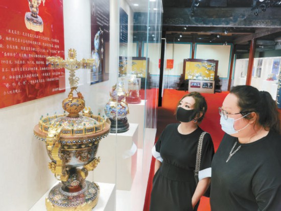 昨天,“匠心筑夢(mèng)共創(chuàng)未來——燕京八絕非遺創(chuàng)新精品展暨中國工藝美術(shù)大師張同祿景泰藍(lán)傳承作品特展”在千年古剎承恩寺北京燕京八絕博物館開幕。觀眾品鑒了《座龍花薰》《富貴恒通》《花漫春和》《智趣》等二十余件題材豐富廣泛、釉質(zhì)細(xì)膩華美、造型多姿多彩、立意莊重深遠(yuǎn)的景泰藍(lán)工藝精品。 本報(bào)記者 吳鏑攝