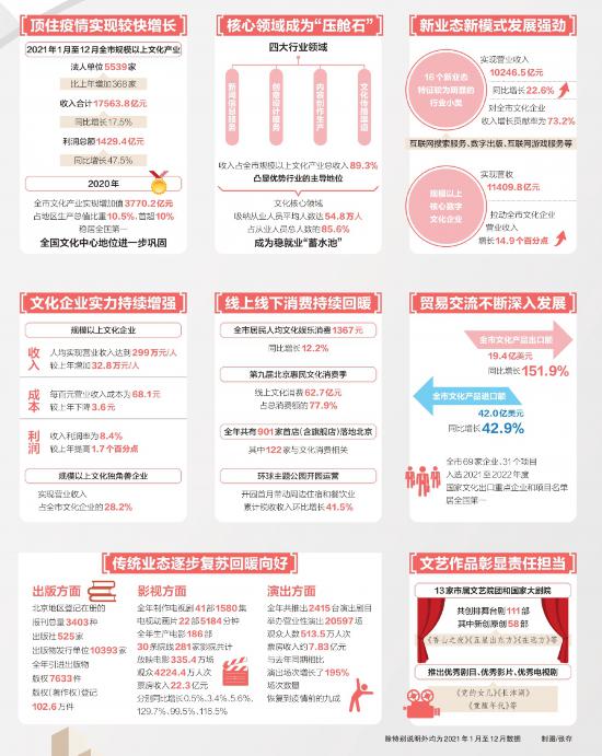 2021年是“十四五”開局之年,北京文化產(chǎn)業(yè)發(fā)展圍繞落實(shí)習(xí)近平總書記關(guān)于文化建設(shè)的重要論述,服務(wù)國家文化發(fā)展戰(zhàn)略,立足推進(jìn)全國文化中心建設(shè),以高質(zhì)量發(fā)展為主線,在疫情防控常態(tài)化形勢下,積極主動(dòng)應(yīng)變求新、穩(wěn)中求進(jìn),實(shí)現(xiàn)了“十四五”時(shí)期的良好開局。