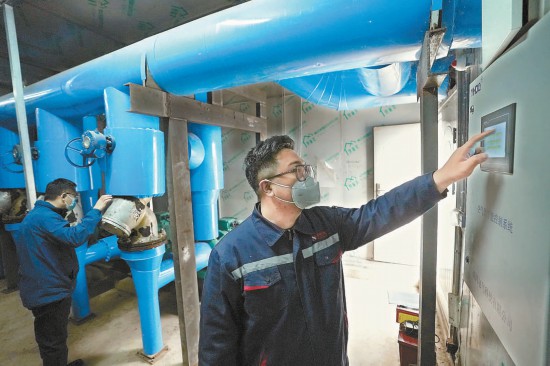 為應(yīng)對(duì)氣溫驟降,海淀區(qū)“無煤化”空氣能集中供暖騷子營站的工作人員值守在崗,及時(shí)對(duì)運(yùn)行機(jī)組數(shù)量和水溫進(jìn)行調(diào)節(jié)。