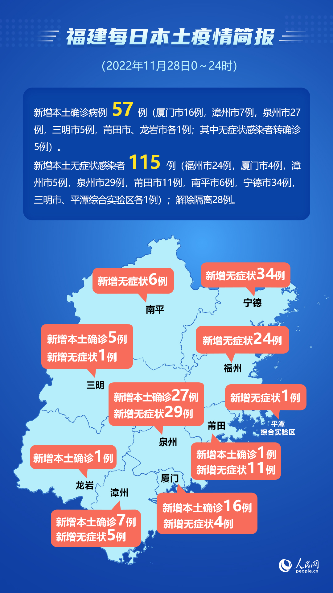 11月28日福建新增本土57+115 其中泉州56例、寧德34例、福州24例、廈門20例