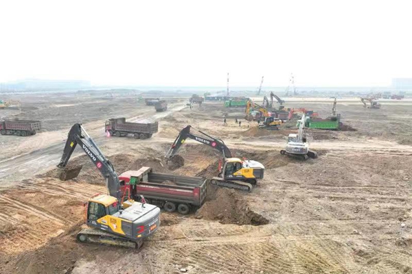 豐海丙烷綜合利用項(xiàng)目現(xiàn)場,工程機(jī)械不停歇。贛榆區(qū)委宣傳部供圖