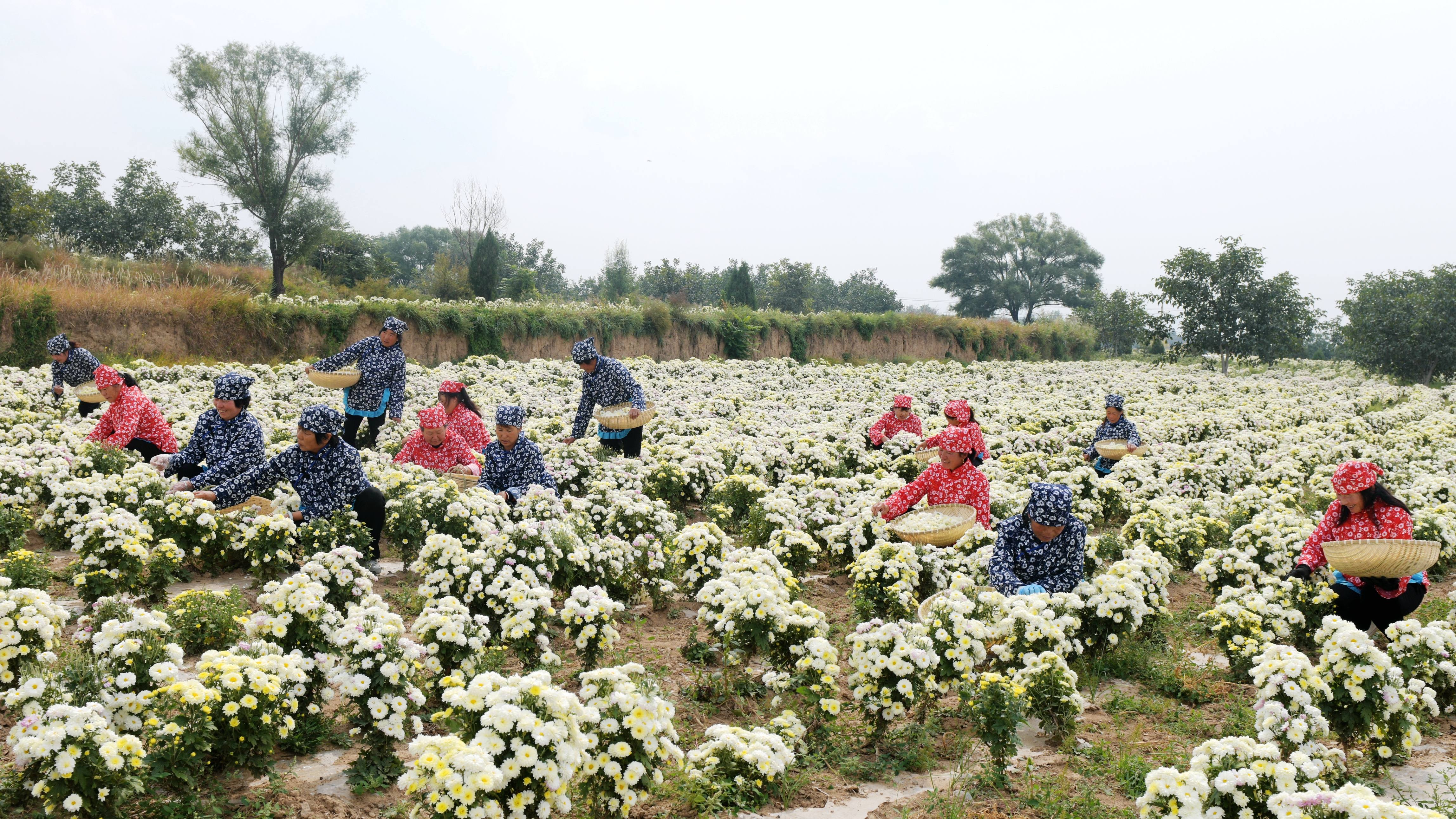 每年菊花節(jié),菊農(nóng)們身穿盛裝采摘菊花成為一道風(fēng)景。(資料圖)